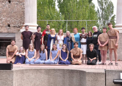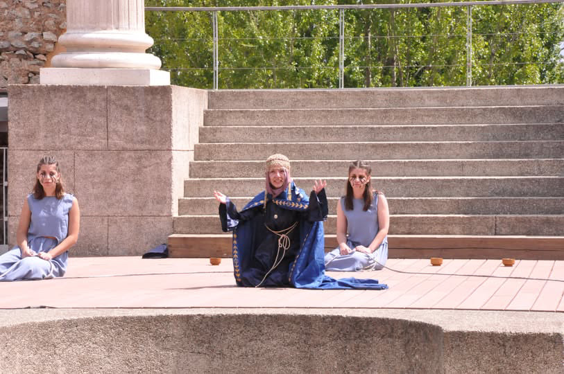 Y llegamos al final de los festivales de Prósopon de este 2025 en el Teatro Romano de Clunia. El Grupo Komos, del IES Districte Marítim de Valencia, ha abierto este último festival con dos representaciones de una gran calidad: por la mañana, el público ha disfrutado en gran manera de Troyanas de Eurípides. Por la tarde, se han ganado los aplausos y las risas de los asistentes con la puesta en escena de Lisístrata de Aristófanes.